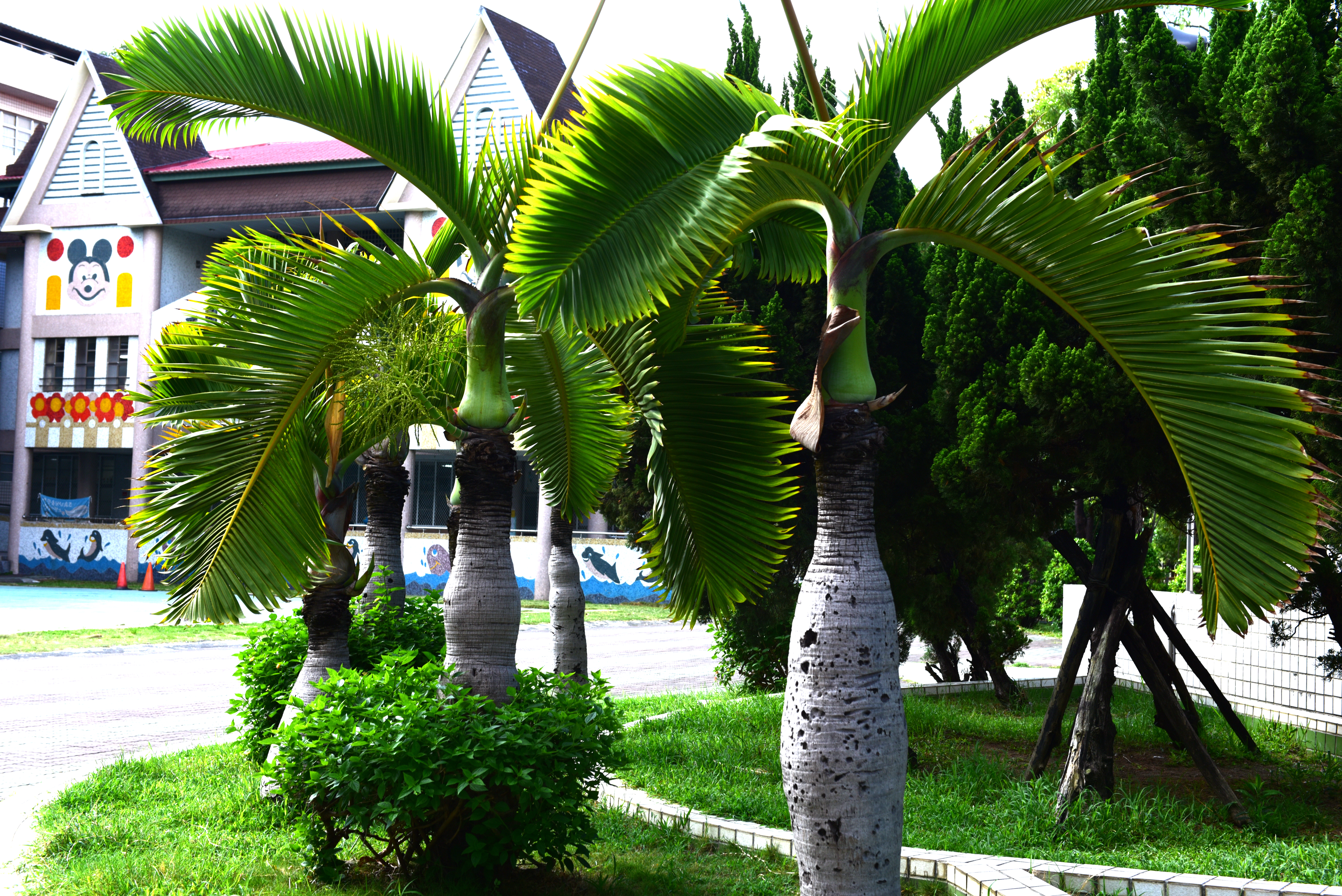 棕櫚科、酒瓶椰子,原產馬斯加里尼島。樹幹單立,高可達6-9公尺, 常光滑。羽狀複葉,叢生幹頂,小葉劍形,先端漸尖。肉穗花序的小梗上 著生小花,約7朵成螺旋狀排列。漿果黑紫色。單幹通直,莖表面有明顯 葉痕及花序遺痕。樹幹有如棍棒,高6~1 0m,形態與酒瓶椰子相似。